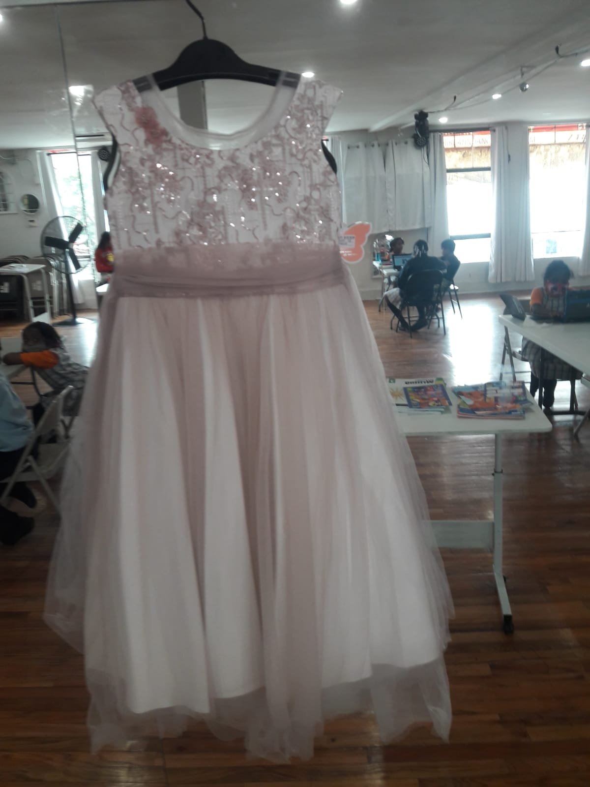 Girls party, birthday, flower girl, church, graduation dress Light pink and white top and off-white bottom